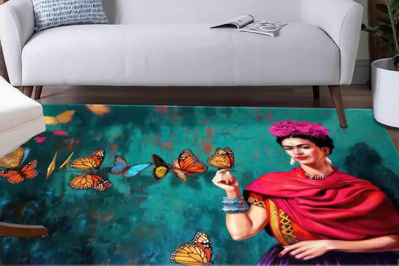 抽象的なフリーダ・カーロのポートレートプリントラグ - モダンなカラフルな装飾