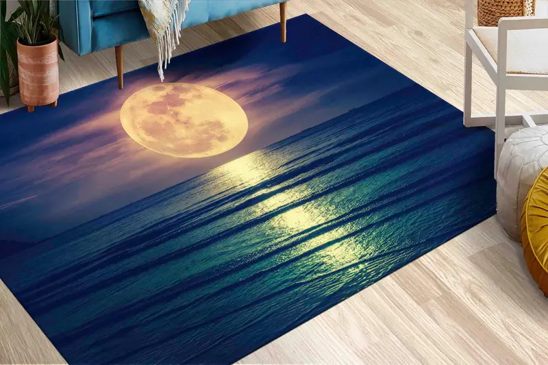 月明かりに照らされた海景プリントラグ:現代的なビーチ風景の装飾