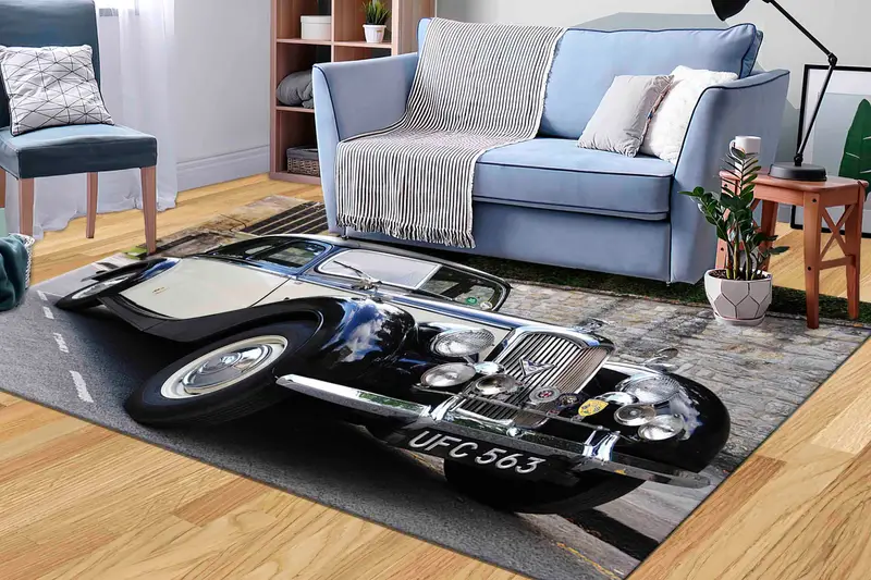 クラシックカー愛好家のためのヴィンテージパターンプリントラグ
