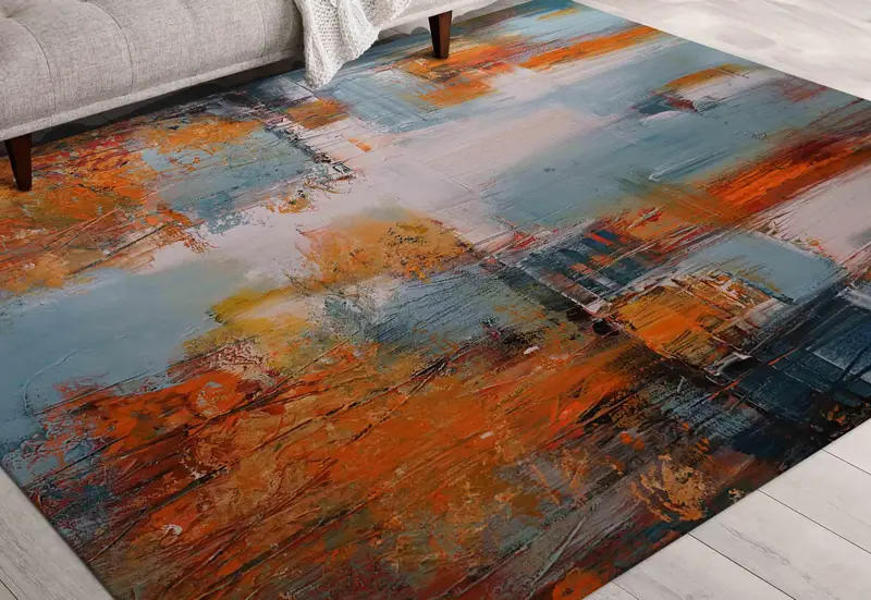 秋の風景プリントラグ:モダン、抽象、カラフルなデザイン