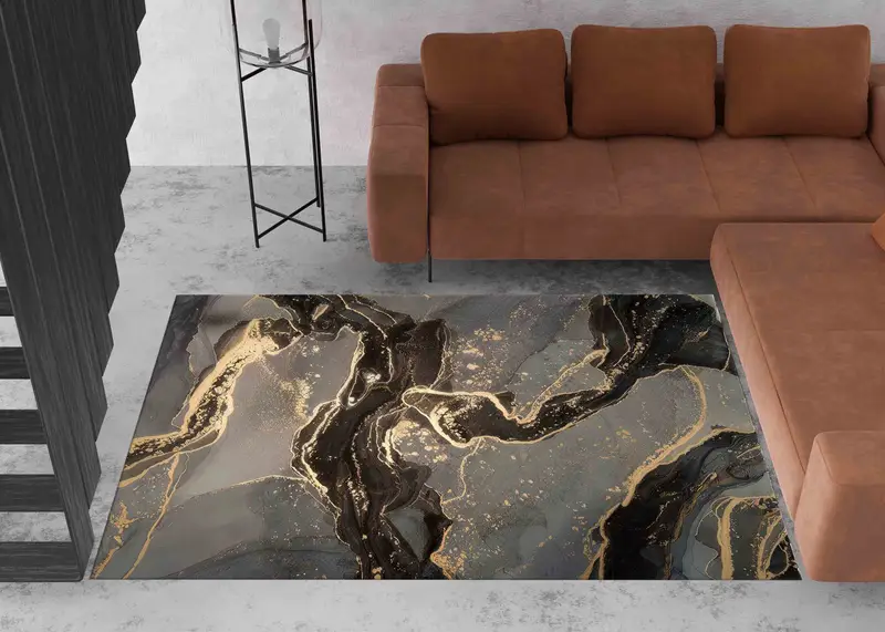 きらめくブラックマーブルプリントラグ:高級インテリアの必需品