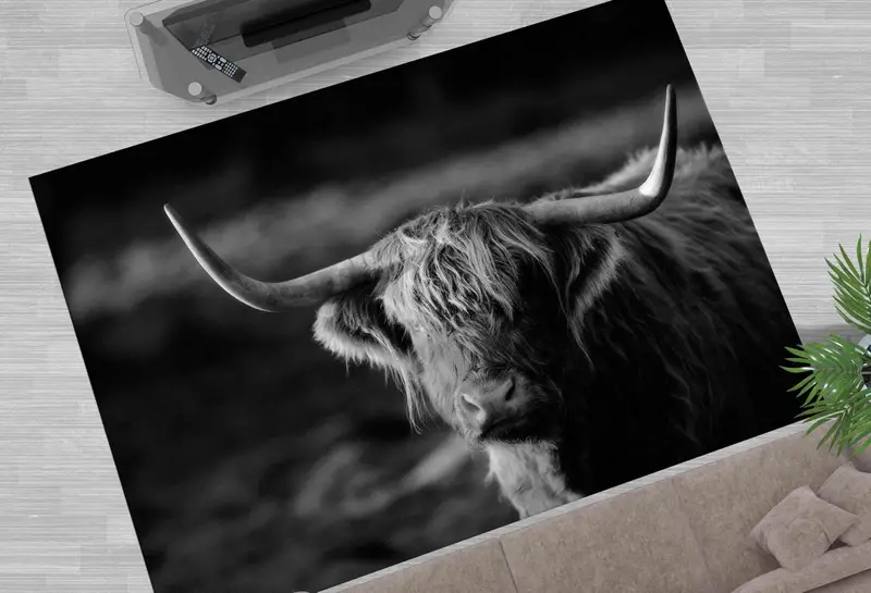 ワイルドハイランドカウプリントラグ: 頑丈な自然の装飾