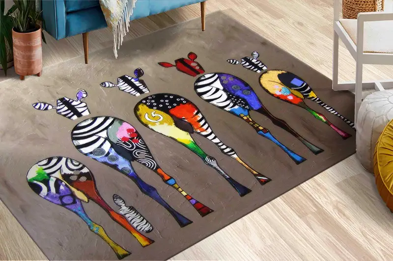 ゼブラバンクシーアートプリントラグ、モダンでカラフルな抽象デザイン