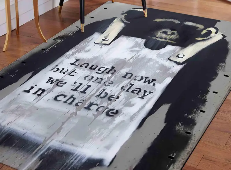 Laugh Now モンキー プリント ラグ - バンクシー アートにインスピレーションを得たデザイン