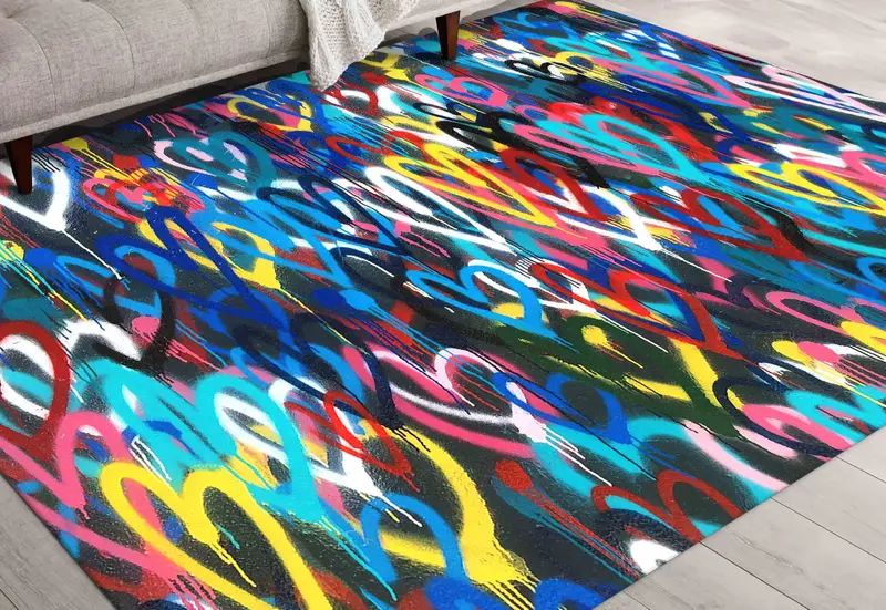 カラフル ハート バンクシー アート ラグ - マルチカラー プリント デザイン
