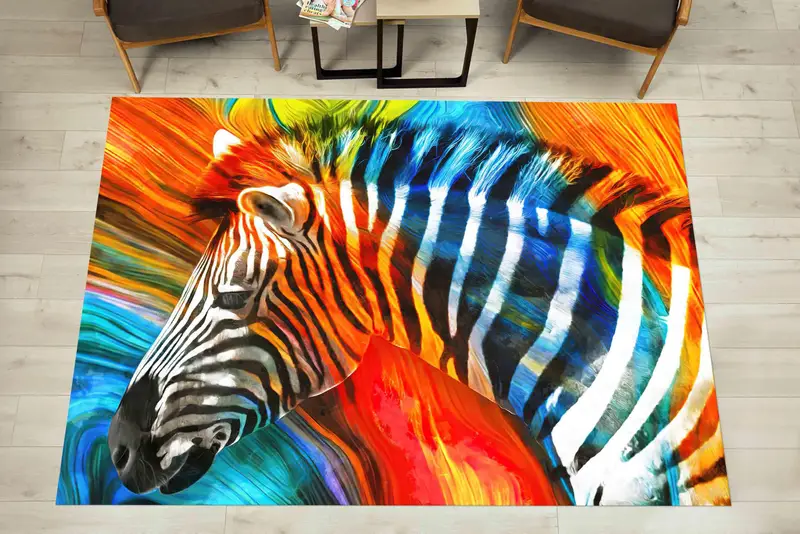 鮮やかなゼブラ柄ラグ - モダンなアフリカの動物デザイン