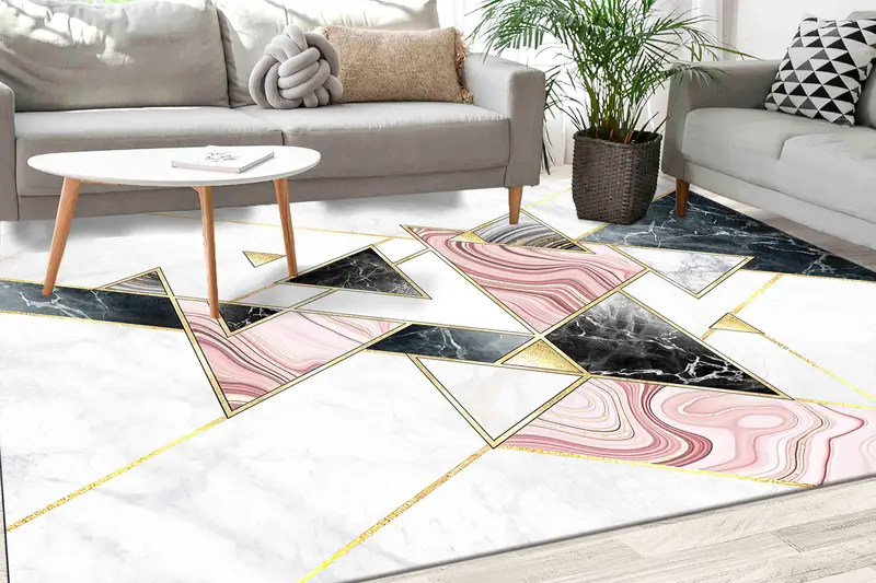 きらめくゴールドの大理石プリントラグ: モダンで贅沢なホームアクセント