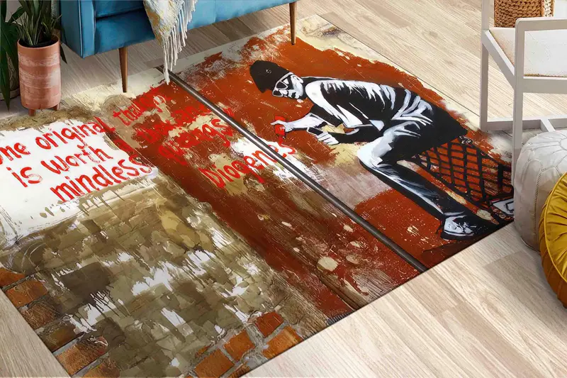 ブラウン バンクシー ボーイ アート プリント ラグ - モダン ホーム アクセント