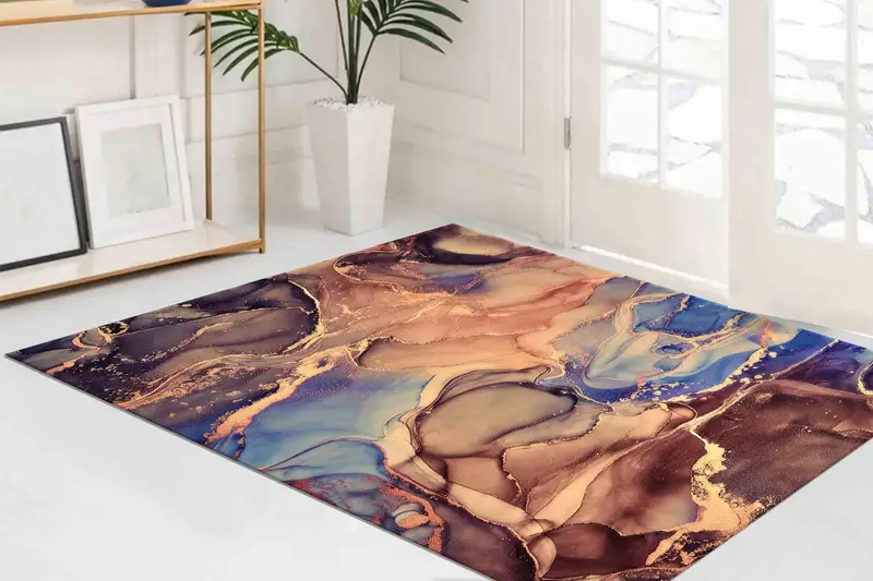 ブラウントーンの大理石プリントラグ:豪華で現代的なデザイン