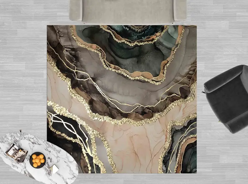 ブラウンマーブルプリントラグ:あなたの空間にモダンな贅沢を