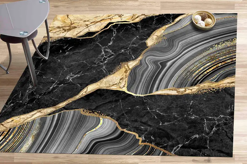 きらめくゴールドの大理石プリントラグ:高級床装飾