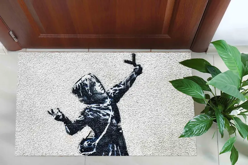 バンクシー ガール グラフィティ アート プリント ラグ - モダンな装飾品
