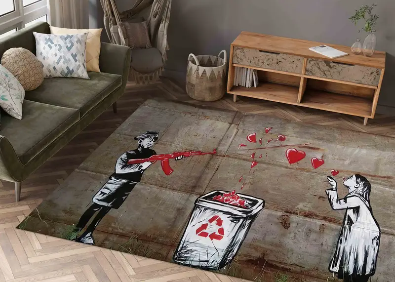 落書きにインスピレーションを得たプリントラグ - バンクシー アート デザイン