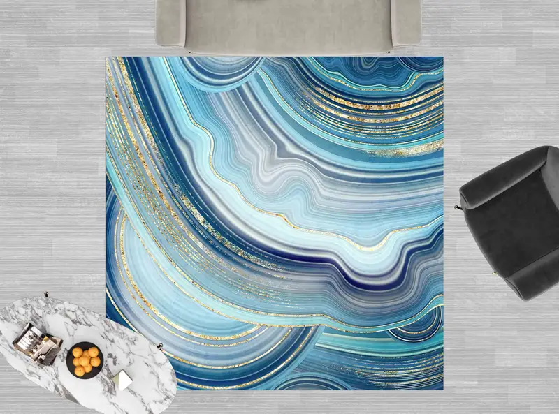 きらめくブルーの大理石プリントラグ:現代的な高級インテリア