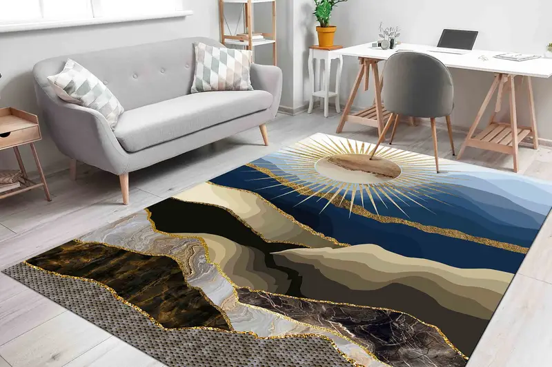 ゴールドサンキラキラ抽象マウンテンビュープリントラグ