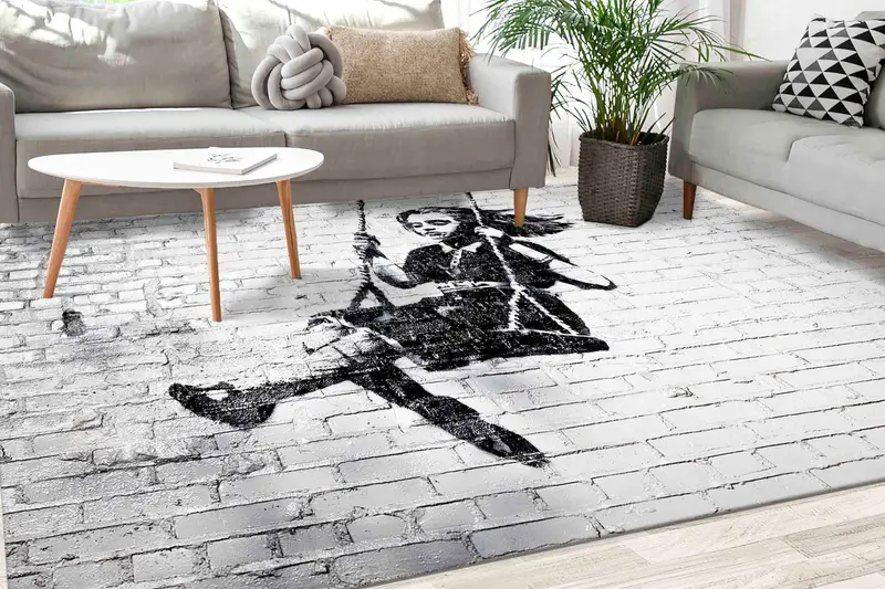 Swing Girl Banksy アートラグ、モダンなプリントラグ、室内装飾用