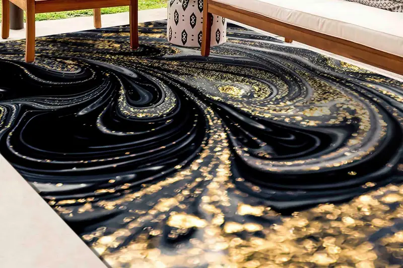 きらめくゴールドの大理石プリントラグ:現代的な高級インテリア