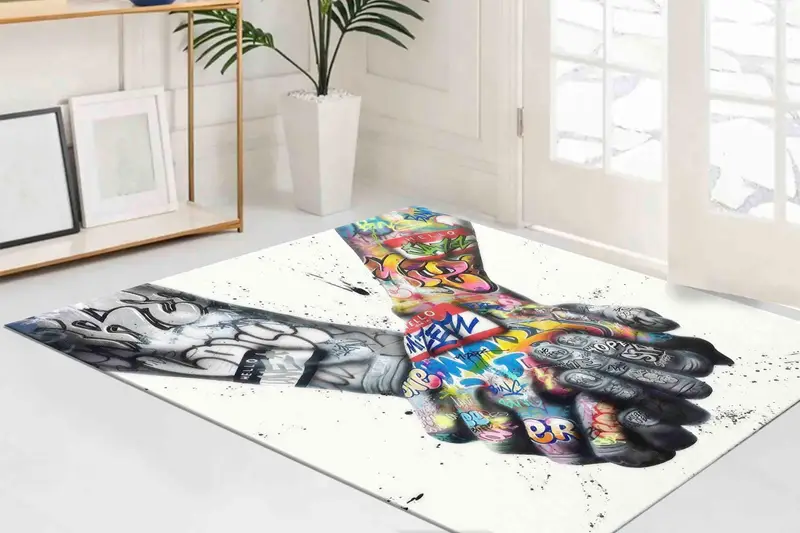 手を繋いでいる落書き愛好家プリントラグ - アーバンアート装飾