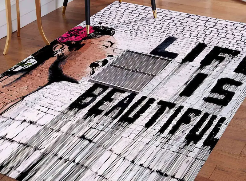 抽象的な女性の落書きバンクシー アート プリント ラグ - モダンな装飾