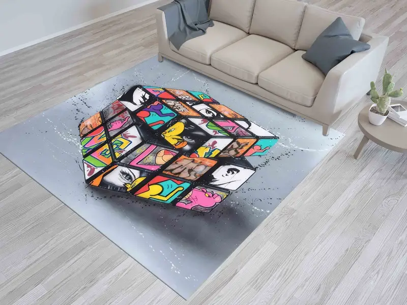 モダンなゲームルーム用の鮮やかなストリートアートグラフィティプリントラグ