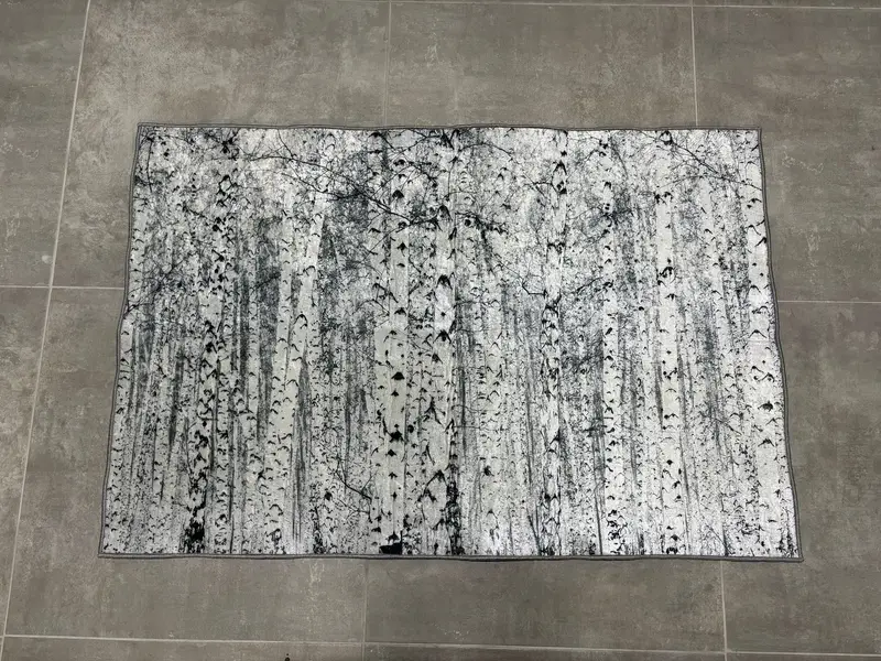 バーチ フォレスト ビュー プリント ラグ - モダンな白黒の風景