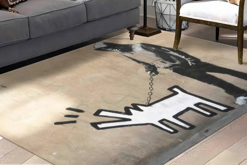 犬の落書きプリントラグ、バンクシーにインスピレーションを得たアートデザイン