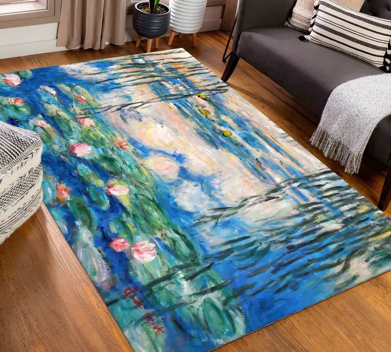 ロータス ブロッサム プリント ラグ: モダンな抽象花柄のエレガンス