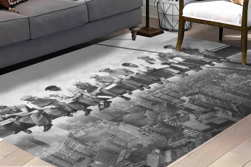 アーバンシック プリント ラグ: ニューヨークの生活空間のためのモダンなデザイン