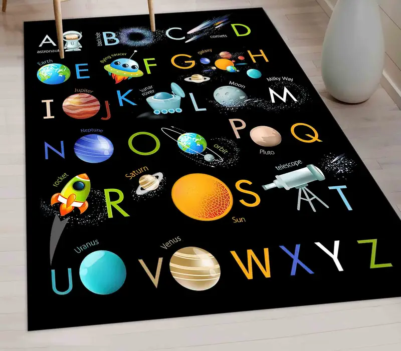 子供部屋やプレイルーム用のアルファベットスペースプリントラグ