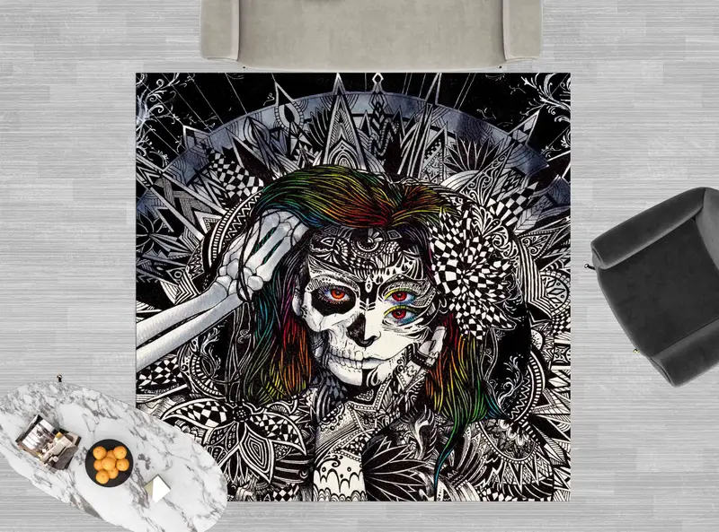 抽象的な女性モチーフのプリントラグ - モダンで芸術的なホームアクセント