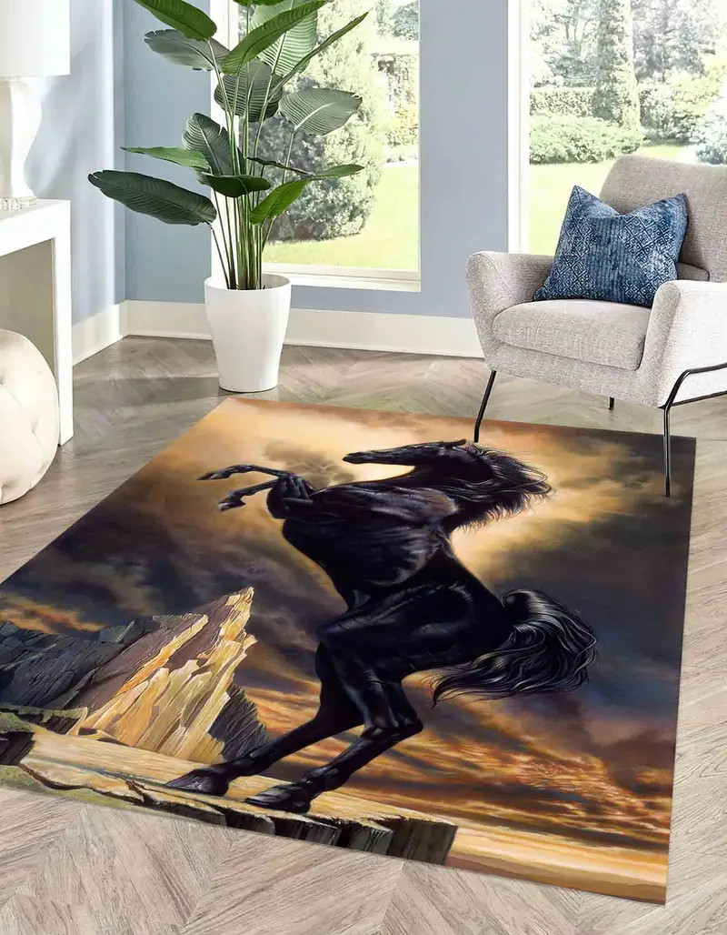 ブラックスタリオンプリントラグ:馬愛好家のための荘厳な装飾