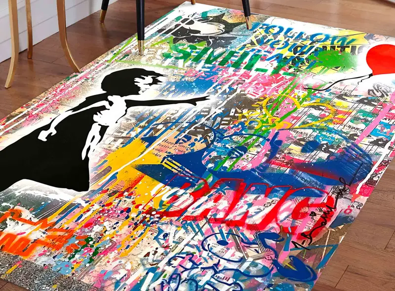 バンクシーにインスピレーションを得た赤い風船の女の子プリントラグ: モダンアートインテリア