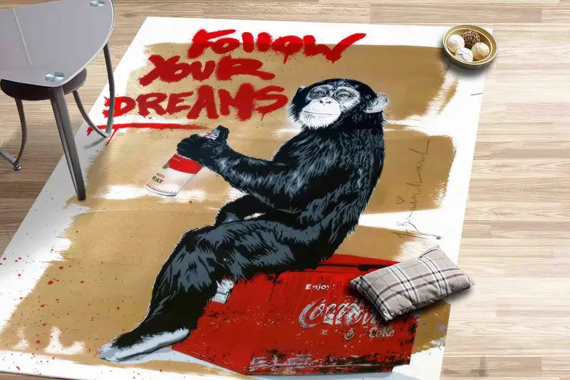 グラフィティ バンクシー モンキー プリント ラグ: アート、夢、モダンなデザイン