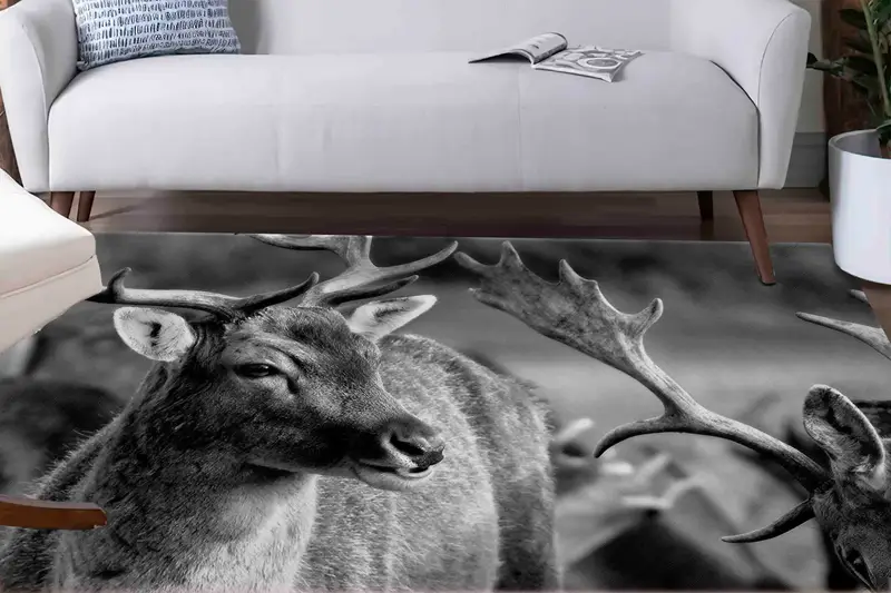 鹿の野生動物プリント ラグ: モダンな空間のためのロフト風の装飾