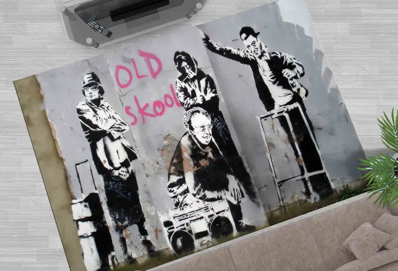 Old Skool Banksy アート プリント ラグ - 抽象的な落書きデザイン