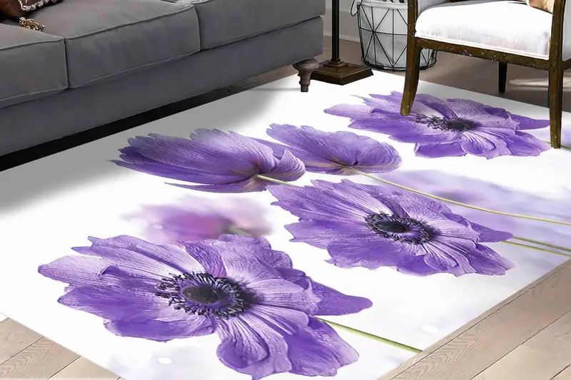 紫色の抽象花柄プリントラグ、リビングスペースのためのモダンなデザイン