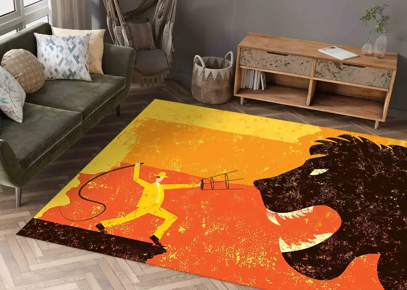 ライオンテイマー抽象プリントラグ、オレンジと黒のデザイン
