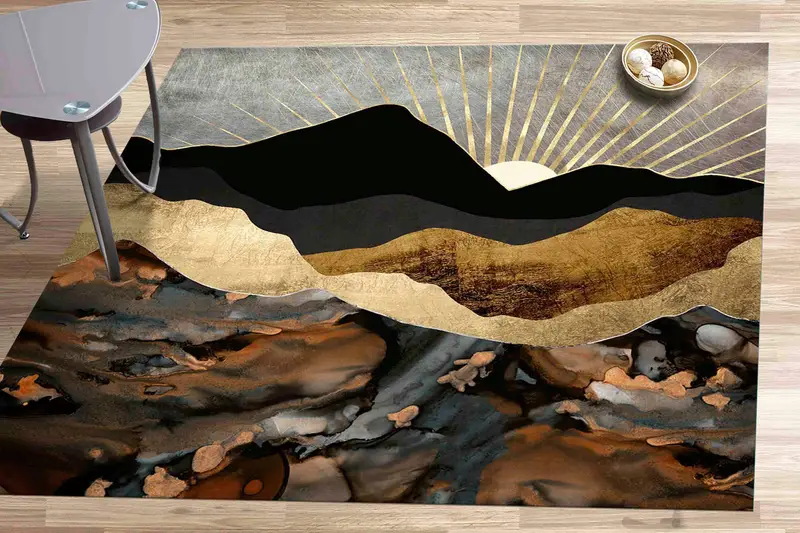 ゴールデン サンシャイン マウンテン ランドスケープ プリント ラグ - 自然をイメージした装飾