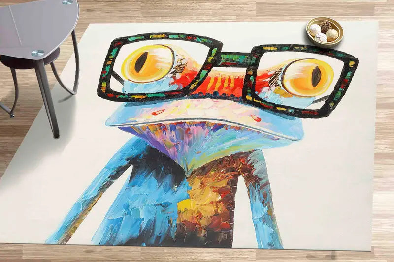 カラフルなカエルの動物プリントラグ - モダンで楽しいデザイン