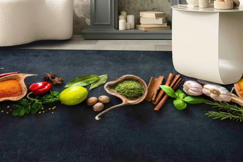 スパイスからインスピレーションを得たプリントラグ: キッチンとダイニングルームにモダンなアクセントをプラス