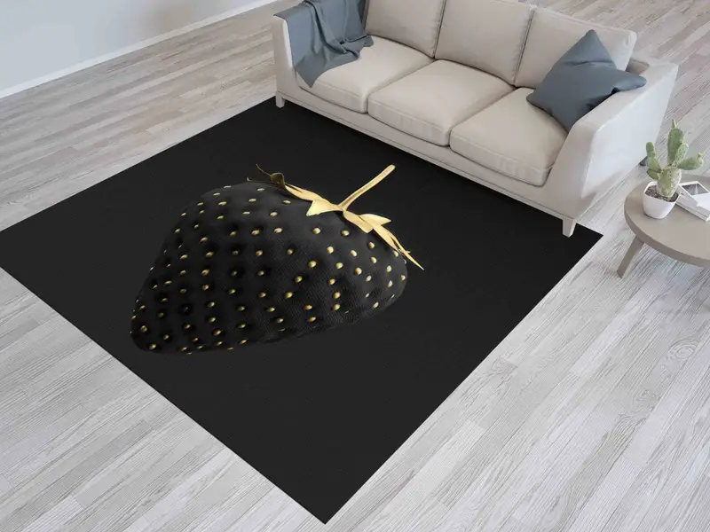 ブラック ストロベリー プリント ラグ: モダン、大胆、活気に満ちた室内装飾