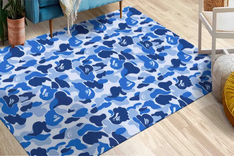 ネイビーブルーの抽象モダンプリントラグ、ブルートーン、カラフルなデザイン