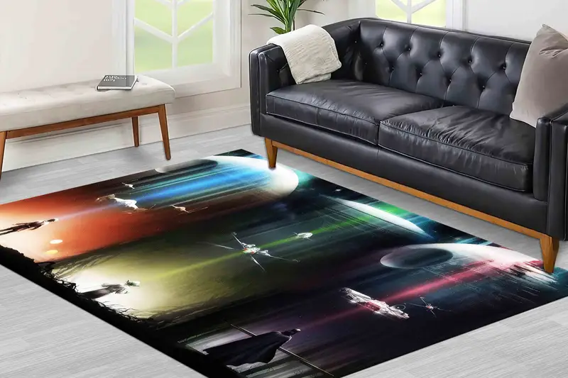 Celestial Galaxy プリント ラグ: モダンで温かみのある宇宙をテーマにした装飾