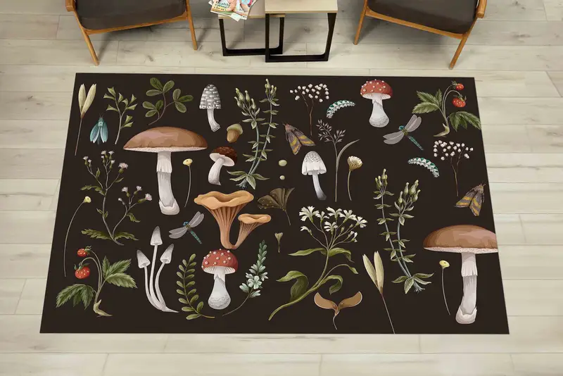 カラフルなキノコ柄プリントラグ - モダンで鮮やかなホームアクセント