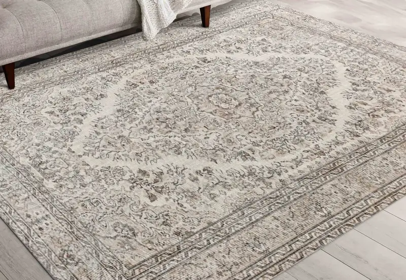 グレー メダリオン ヴィンテージ花柄プリント ラグ - トルコ デザイン