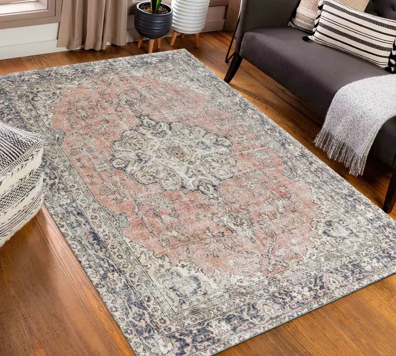 トルコのウシャクの影響を受けたヴィンテージメダリオンデザインプリントラグ