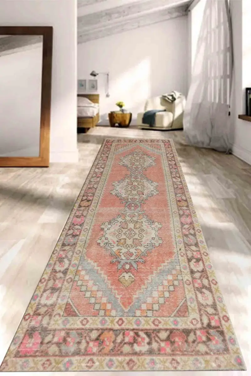 ヴィンテージトルコアステカプリントラグ:落ち着いた幾何学模様