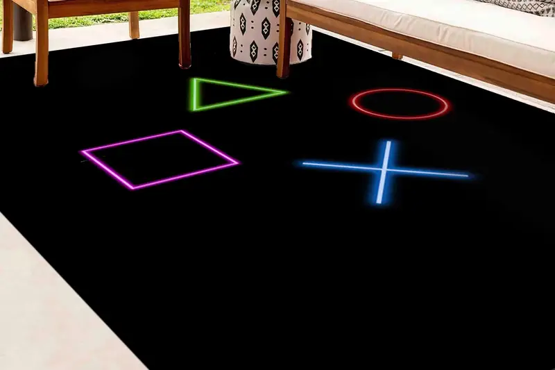 ネオンパターンプリントラグ - モダン、トレンディ、ブラック&ネオン