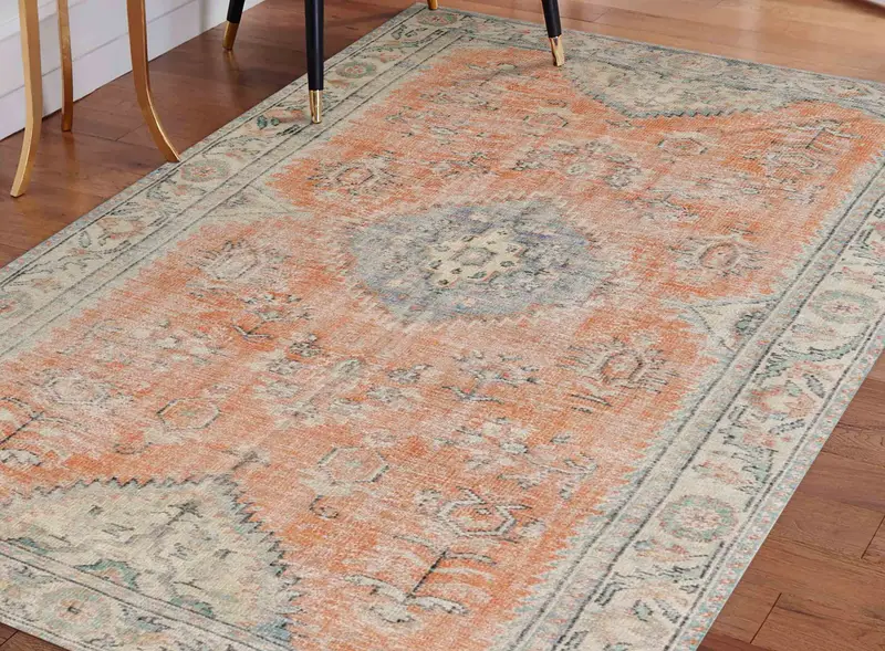 メダリオン オレンジ & ブラウン 花柄 アンティーク スタイル ヴィンテージ プリント ラグ