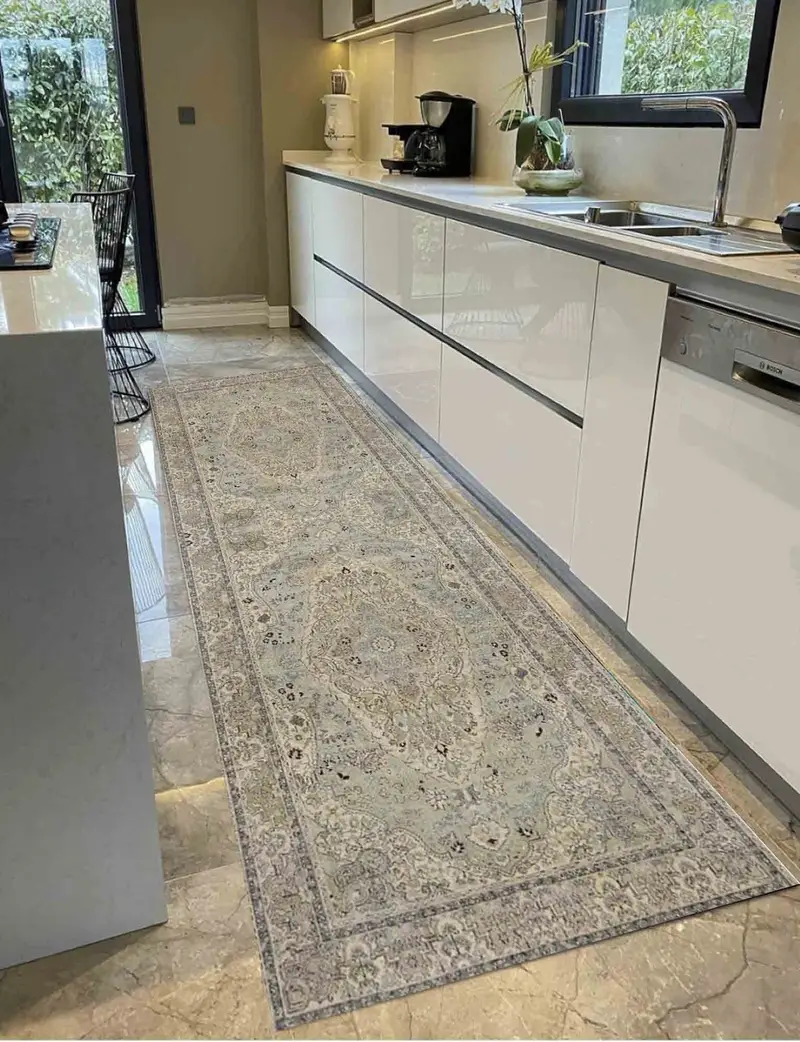 ソフトグリーントーンのヴィンテージフローラルメダリオンプリントラグ